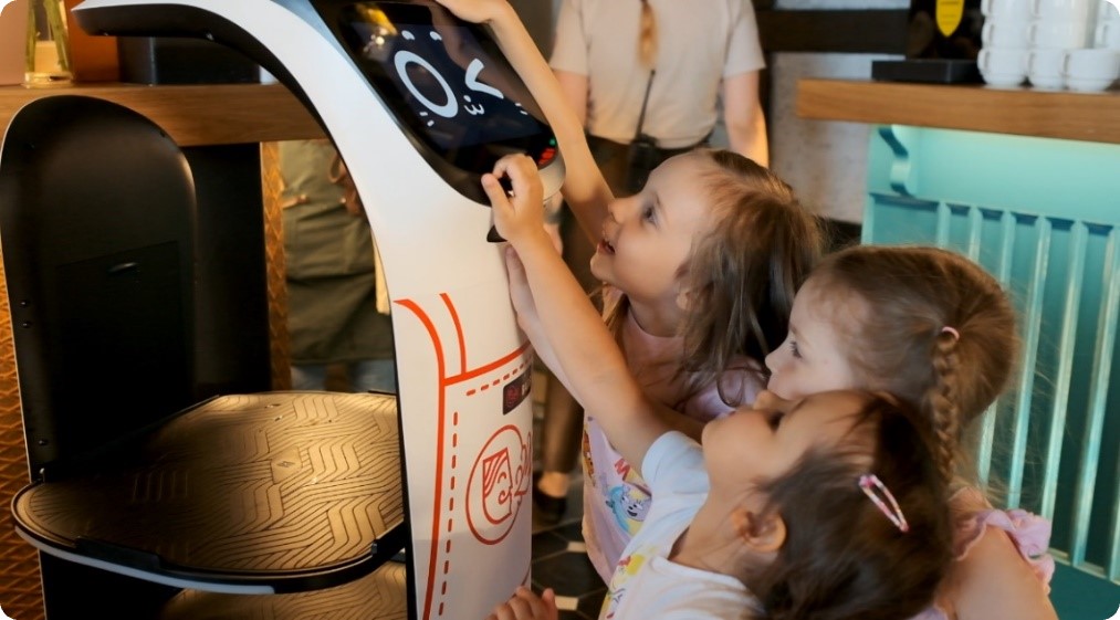 Обновленная версия любимого многими робота-официанта, оснащенная рекламным экраном, что открывает новые горизонты для взаимодействия с клиентами и продвижения услуг. Этот робот не только выполняет задачи по доставке, но и становится активным участником рекламных кампаний, привлекая внимание к новинкам и специальным предложениям.